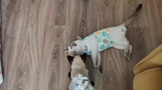 Первый день после стерили зации. Марта ходит, Пайпер лежит
