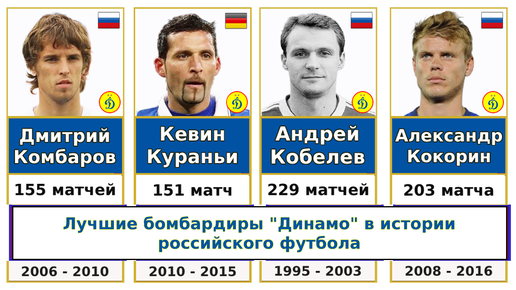 ТОП-33: лучшие игроки московского "Динамо"по забитым голам в истории российского футбола