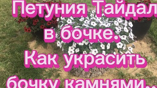 Петуния Тайдал растет в бочке. Как украсить бочку камнями…