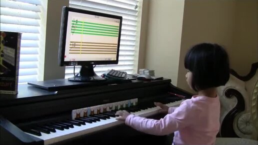 3-хлетний ребенок учится играть наизусть в режиме "закрытых" нот.