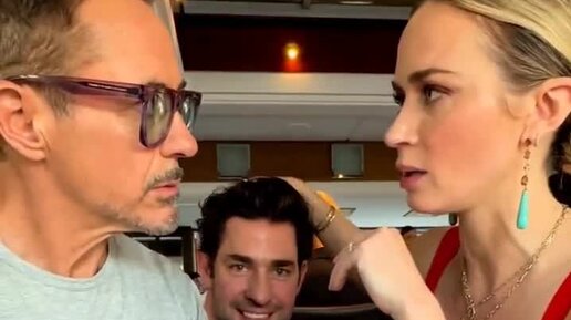 Роберт Дауни-младший, Эмили Блант и Джон Красински во время промо-тура «Оппенгеймера» в Париже.