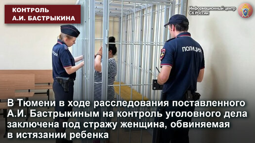 В Тюмени в ходе расследования поставленного А.И. Бастрыкиным на контроль уголовного дела заключена под стражу обвиняемая в истязании ребенка