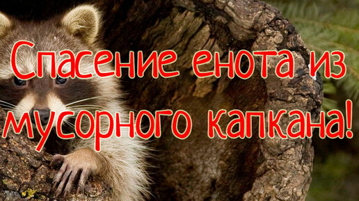 Спасение енота из мусорной ловушки