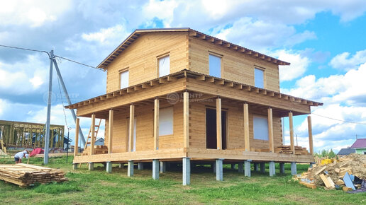 Двухэтажный дом 10 на 10 из бруса с угловой террасой в Сыктывкаре Обзор дома от Центра Домостроения