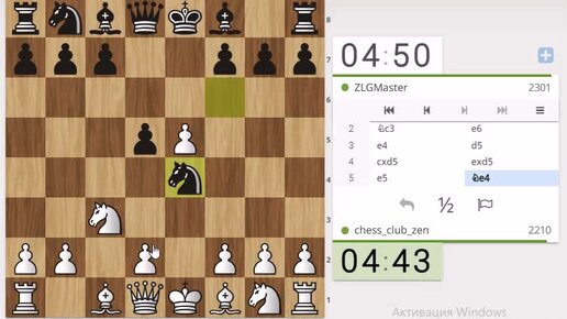 Решил поиграть в "стиле Таля", и получил 99% проигранную позицию, однако в конце партии неожиданно хитро получил огромный перевес
