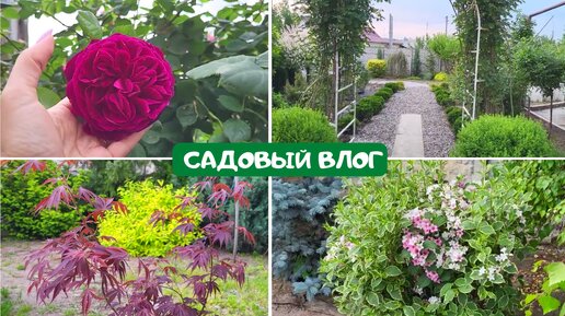 Наш японский клён. Магнолия Джени и вейгела вариегатная цветёт. Доделали дорожку вдоль арки.