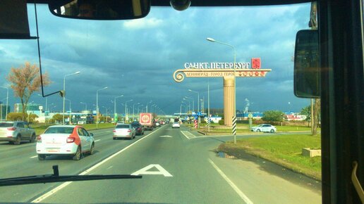 Без остановок!Аэропорт Пулково - станция метро Московская (из окна автобуса по маршруту 39Э), окт.2019г.