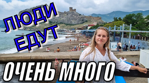 Судак. Крым. Народу больше с каждым днём. Люди едут несмотря ни на что! Это только начало. Появились пробки. Пляж почти забит. Июль 2023
