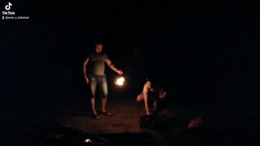 Огненный дракон в ночном лесу у озера