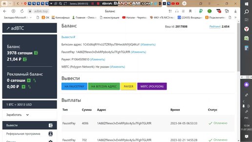 Вывод 4039 биткоин сатоши с сайта adBTC и ИТОГИ заработка в интернете за июнь 2023 г.