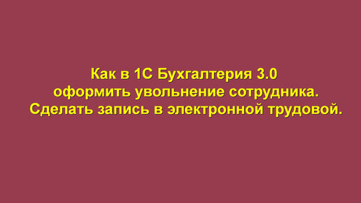 Как в 1С Бухгалтерия 3.0 оформить увольнение сотрудника, сделать запись в электронной трудовой.