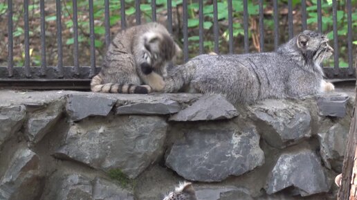 Котята манулов играют с мамой Евой. 13.07.2023