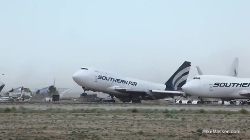 Сильный ветер пытается поднять в небо заброшенный Боинг!