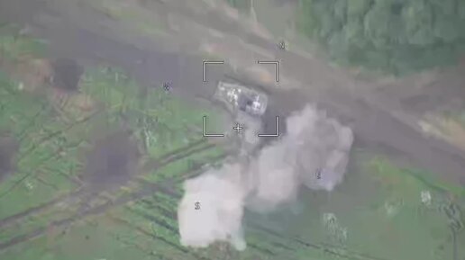 Кадры уничтожения боевой бронированной машины ВСУ расчетом барражирующего БЛА на Купянском направлении
