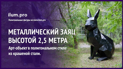 Чёрный полигональный заяц высотой 2,5 метра из крашеной стали / Айлюм Про