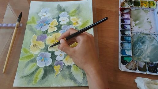 Рисую цветы фиалки (виолы) акварелью. Рисуем вместе красками.