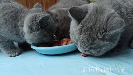 Как бы ни была погода за окном, а обед для британских котят по расписанию.
