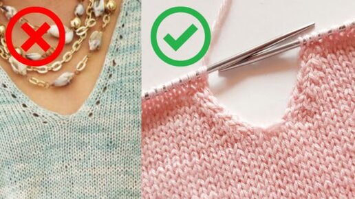 УДИВИТЕЛЬНО ПРОСТО! Уголок V-образной горловины без дырок, с ровными и аккуратными петлями! ВАМ ПОНРАВИТСЯ!