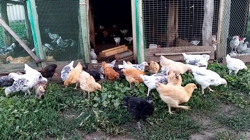 Цыплята разных пород на вечерней прогулке!!!