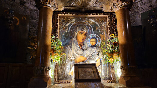 Дорогие друзья! Это икона Богородицы Иерусалимской - в Храме Успения Пресвятой Богородицы в Гефсимании. Икона с тыльной стороны Усыпальницы