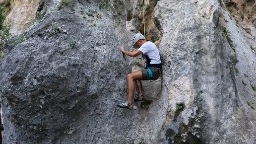 Я впервые покоряю скалу в полном снаряжении. Хочу сказать что это очень страшно.