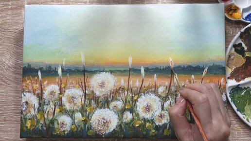 Посмотрите как нарисовать красивое поле одуванчиков. Живопись акрилом. Мастер-класс от MyAnh Art