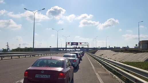 Крымский мост. Очередь на досмотр автомобилей сегодня.