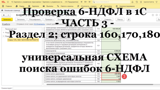 Проверка 6-НДФЛ в 1С: ЧАСТЬ 3 - Раздел 2; строка 160 (универсальная СХЕМА поиска ошибок 6-НДФЛ)