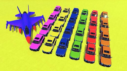 Double Flatbed Trailer Truck vs Speedbumps Train vs Cars Beamng.Drive / Flatbed Trailer