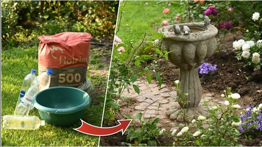 Из пластиковых бутылок и тазика Фикс Прайс - декоративная купальня для птиц своими руками