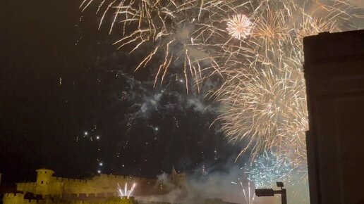 Франция, феерверк в Каркассоне в честь Дня взятия Бастилии 14 июля