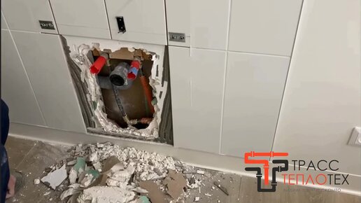 Поиск утечки воды из пластиковой трубы ХВС в стене поликлиники