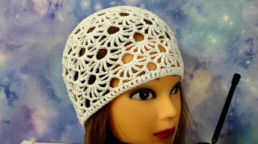 Летняя шапочка крючком очень красивым узором. Шапочка для начинающих.