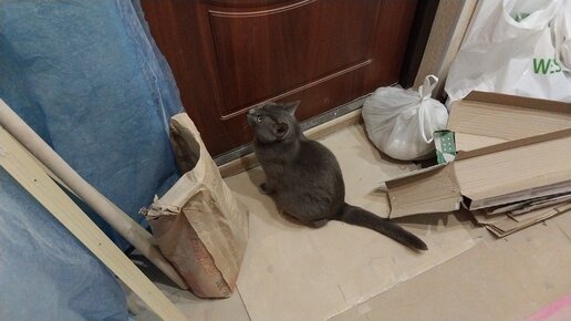 🔨Ремонт ТУАЛЕТА и ВАННОЙ комнаты. День 13. Начали класть плитку в туалете! Кошка хочет уйти из дома😹