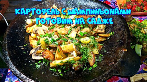 Жареный картофель с шампиньонами на скорую руку. Готовим на садже
