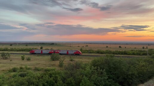 «На закате после дождя» Рельсовый автобус РА2 сообщением Волгоград-1 - Урюпино на перегоне Белушкино - Лог