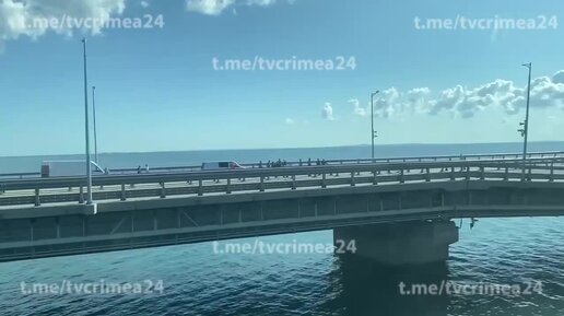 Телеканал Крым 24 показывает поврежденную часть Крымского моста, видео снято пассажиром из вагона поезда