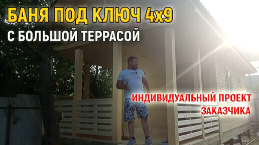 Проект бани из бруса 4х9 под ключ с БОЛЬШОЙ террасой от СК Доминика
