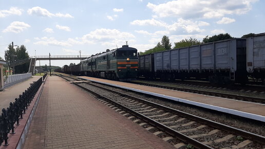 Тепловоз 2ТЭ10УК-0393 с грузовым по станции Старые Дороги