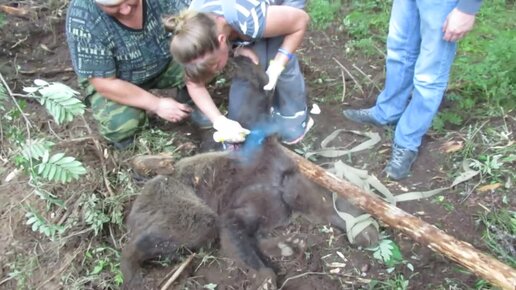 Заключительная часть спасения дикого лесного медведя.Освободили от петли, прокололи антибиотики и обработали ранки. Предыстория в описании