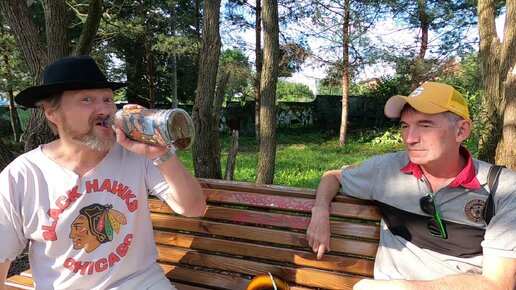 Репетиция сцены кинокомедии. Слева направо. Местный забияка и пьяница дядя Витя и Маркиз Де Стас