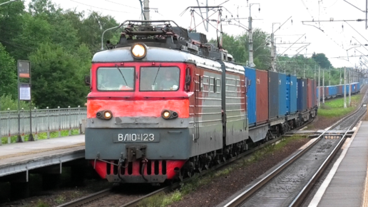 "Старый знакомый". ВЛ10У-123 с контейнерным грузовым поездом следует через о.п. 45 км
