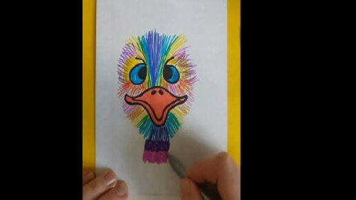 Рисуем милого страуса, цветными фломастерами, легко и просто