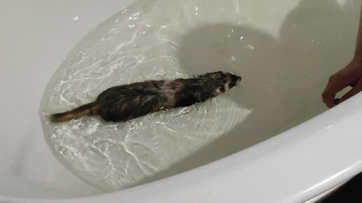 Хорёк плавает в ванне