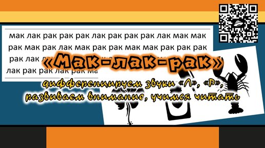 "Мак-лак-рак": дифференцируем звуки "Л", "Р", развиваем внимание, учимся читать