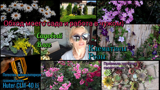 Прогулуа по моему саду в Подмосковье. Розы, клематисы. Пробую газонокосилку Huter clm-40 Li