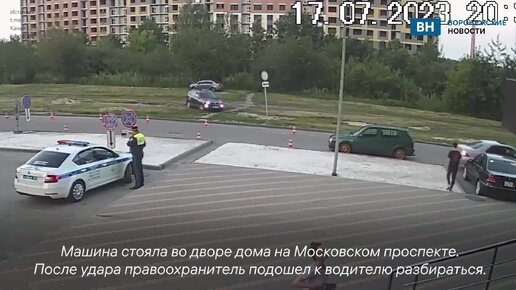 Воронежец на иномарке задел припаркованную машину на глазах у сотрудника ДПС
