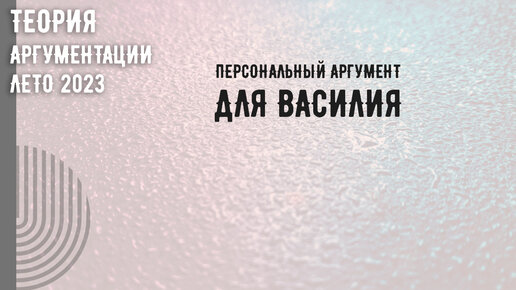 Персональный аргумент для Василия