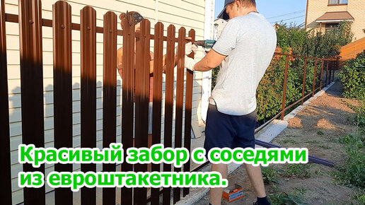 Красивый забор с соседями из евроштакетника готов. Мы это сделали.