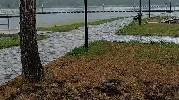 Набережная в Верхнем Тагиле. Шумит трактор, идут работы по благоустройству. И дождь идет.